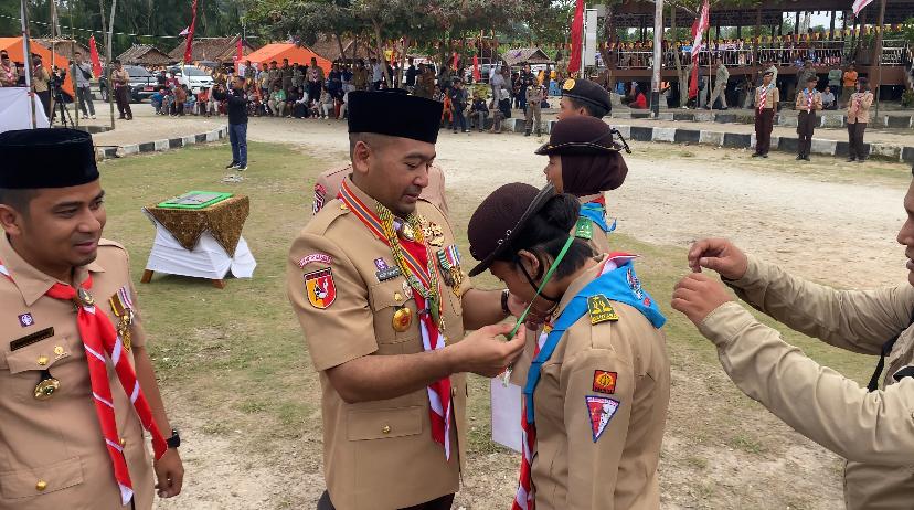 HARIANHALUAN.ID — Wakil Gubernur Sumbar Audy Joinaldy selaku Ketua Kwartir Daerah (Ka Kwarda) Gerakan Pramuka Sumbar membuka secara resmi Kemah Bela Negara (KBN) tingkat Sumbar tahun 2023 di Bumi Perkemahan Eisata Pantai Mapadegat, Desa Tuapejat, Kecamatan Sipora Utara, Kepulauan Mentawai, Senin (13/11/23).