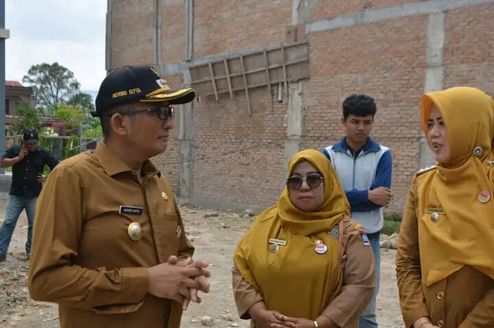 Wali Kota Padang Hendri Septa saat memonitoring pengerjaan pembangunan Kantor Camat Padang Timur yang baru, Senin (20/11/2023) berharap agar pengerjaan cepat selesai sebelum akhir tahun.