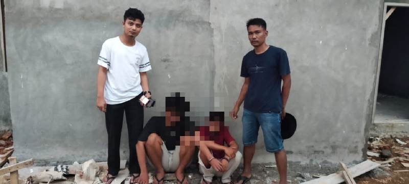 Dua pemuda ditangkap personil unit Reskrim Polsek Kamang Baru, Minggu (24/4/2022) di salah satu kawasan perumahan di Sungai Tambang, Nagari Kunangan Parik Rantang, Kecamatan Kamang Baru. IST
