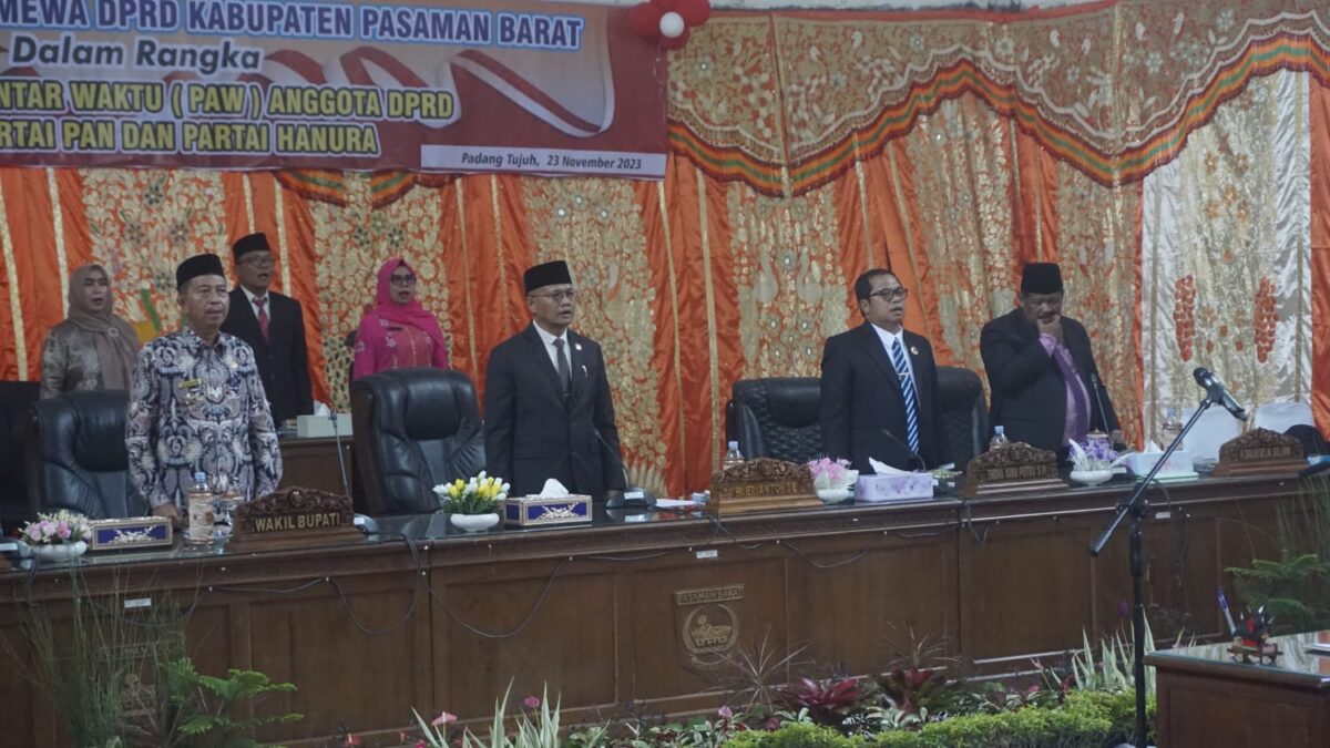 Dua orang anggota yang diganti ini adalah Baharuddin R dari Fraksi Partai Amanat Nasional (PAN) dan Damlis dari Fraksi PPNR sisa masa jabatan 2019-2024 di Gedung Parlemen Padang Tujuh, Kamis (23/11).