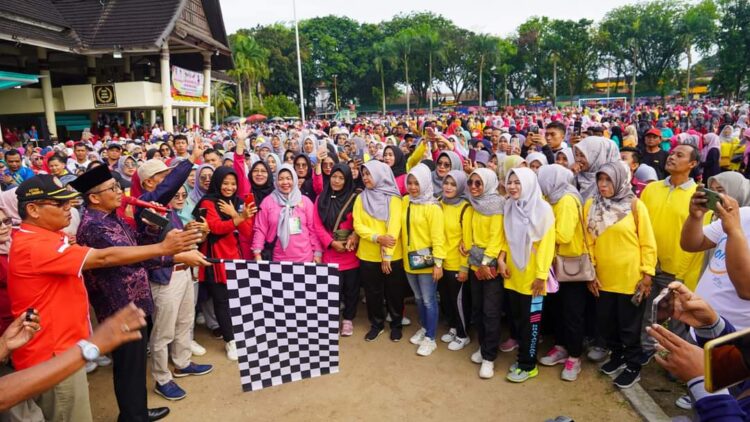 PADANG, HARIANHALUAN.ID – Memeriahkan HUT ke-78 PGRI dan Hari Guru Nasional (HGN), Wali Kota Padang, Hendri Septa melepas kegiatan jalan santai yang diikuti para anggota PGRI, kepala SD, SMP, SMA se-Kota Padang, ribuan guru se-kota Padang, dan masyarakat Kota Padang, Sabtu (25/11/2023).