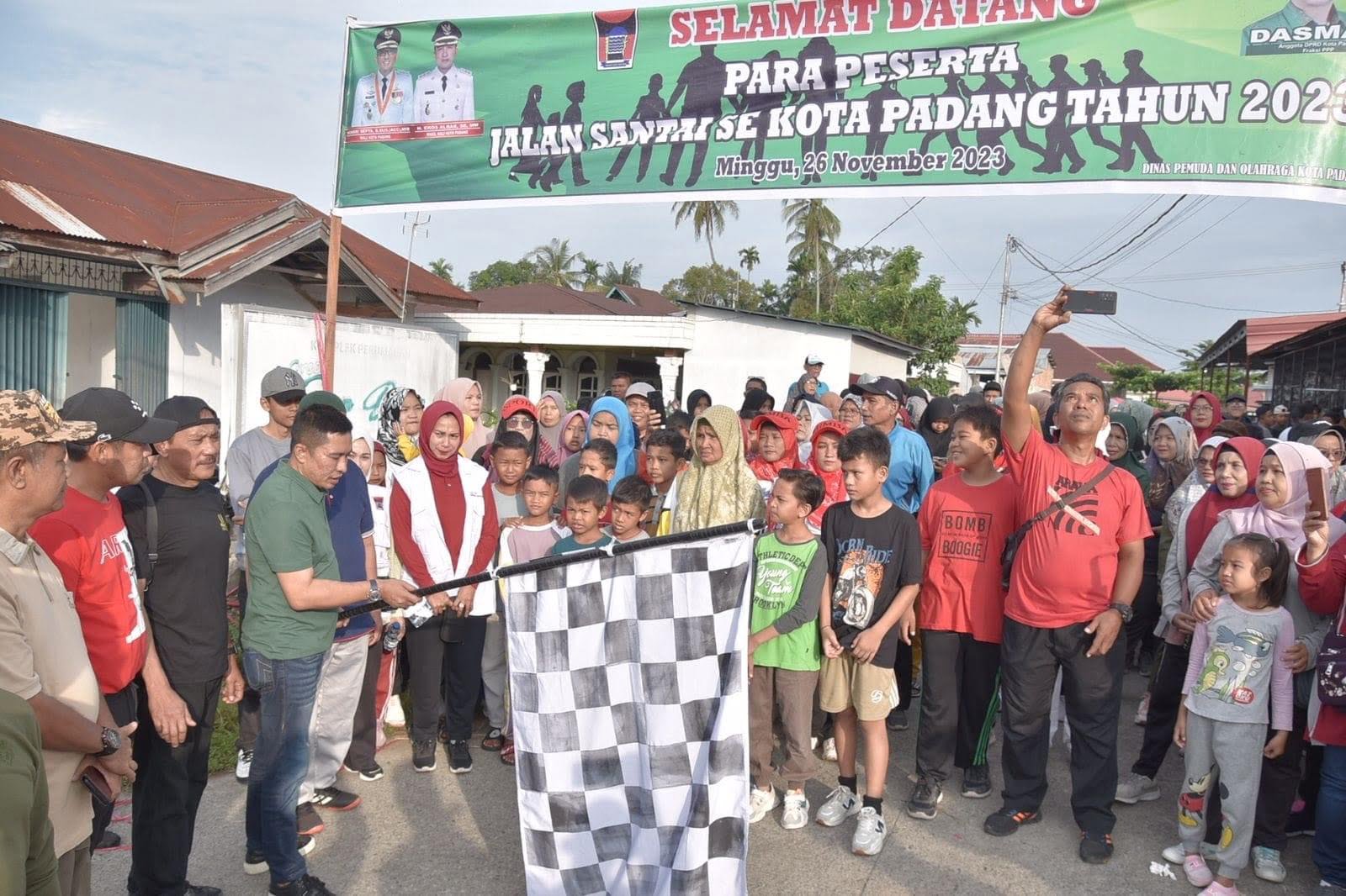 PADANG, HARIANHALUAN.ID – Wakil Wali Kota (Wawako) Padang Ekos Albar memberikan apresiasi atas digelarnya kegiatan Jalan Santai yang diikuti warga Lubuk Gajah, Kelurahan Pisang, Kecamatan Pauh, Minggu (26/11/2023).