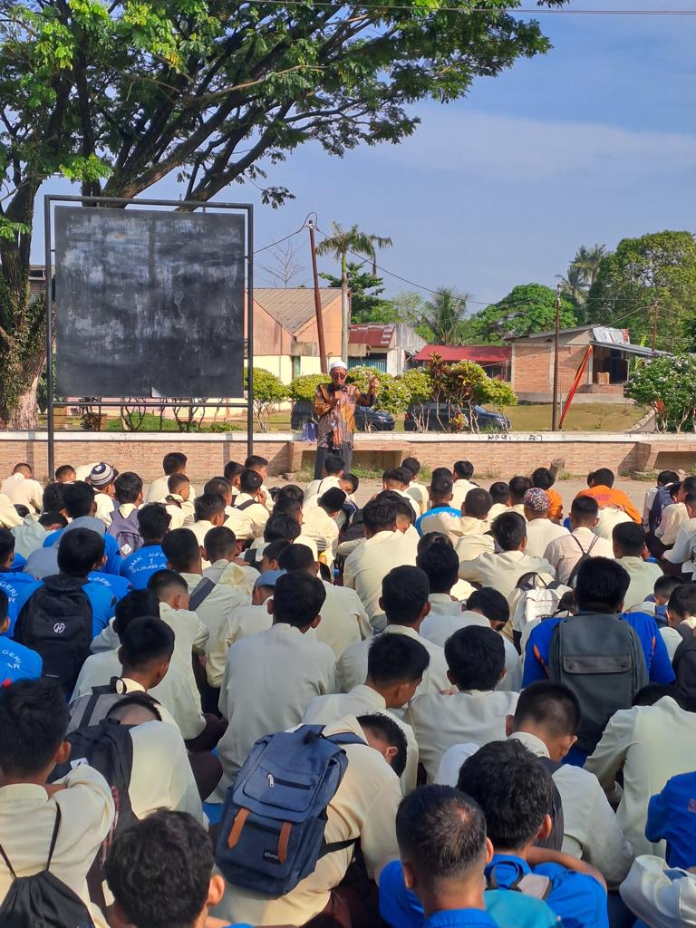 HARIANHALUAN. ID – PLN Unit Pelaksana Pelayanan Pelanggan (UP3) Padang melakukan sosialisasikan PLN Mobile kepada ratusan siswa SMK Negeri 1 Sumbar, Jumat (24/11). Sosialisasi diadakan seusai kegiatan Kultum di halaman sekolah tersebut.