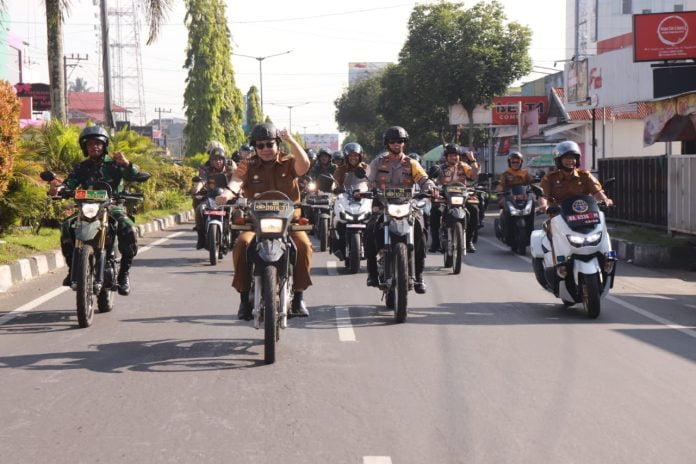 Setelah apel gabungan, Pj. Wali Kota Payakumbuh, Wakapolres Payakumbuh, Dandim 0306/50 Kota, Ketua Bawaslu Kota Payakumbuh, Danyon 131/BRS, dan Subdenpom I/4-1, Danki I Yon B Brimob Polda Sumbar, Sekda Kota Payakumbuh, Asisten, Kepala OPD, Camat dan Lurah se-Kota Payakumbuh melakukan patroli keliling pengamanan Pemilu 2024. (h/tfk)