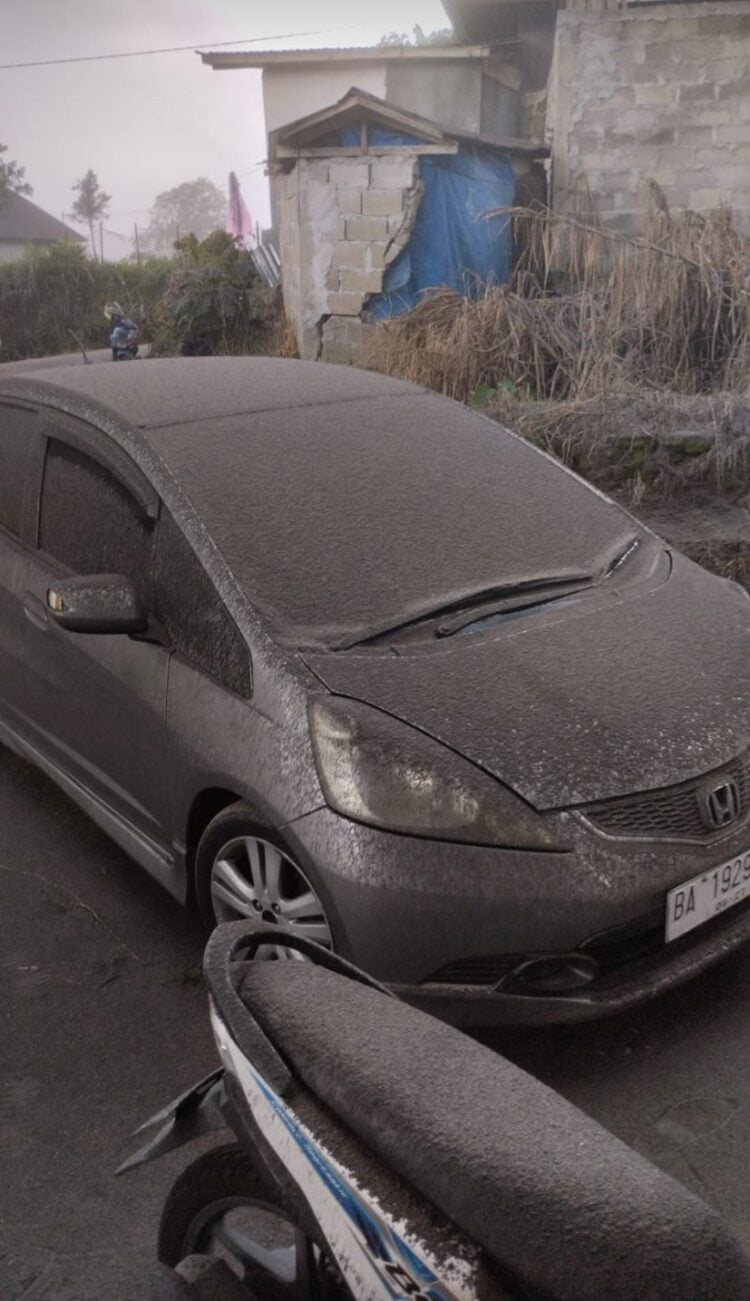 FOTO : Kendaraan di Bukittinggi tertutupi pasir dan debu yang disemburkan Gunung Marapi, Minggu (3/12). IST