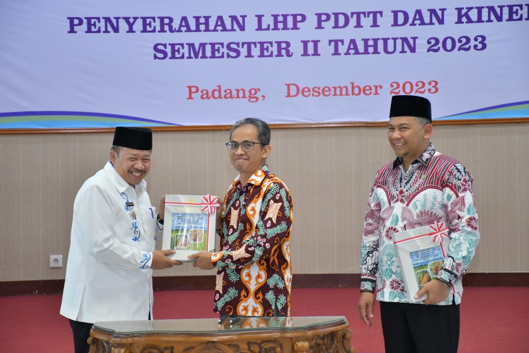 AGAM, HARIANHALUAN.ID — BPK Perwakilan Sumatera Barat menyerahkan Laporan Hasil Pemeriksaan (LHP), atas hasil Pemeriksaan dengan Tujuan Tertentu (PDTT) dan Kinerja Tahun Anggaran 2021-2023 kepada Pemerintah Kabupaten Agam.