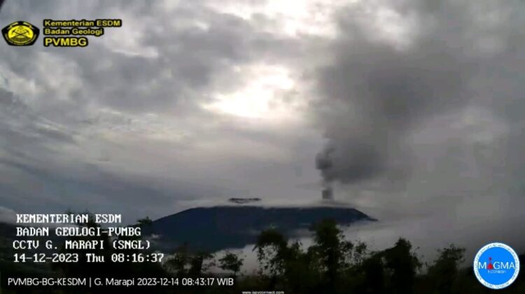 HARIANHALUAN. ID – Kepala Pos Pengamatan Gunungapi Marapi, Teguh Purnomo mengatakan telah terjadi erupsi G. Marapi, Sumatera Barat pada Kamis (14/12/2023) pukul 08:11 WIB.
