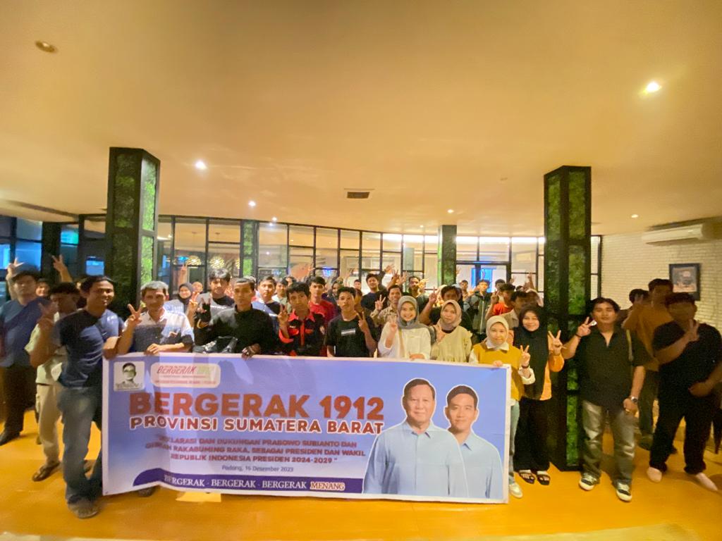 PADANG, HARIAN HALUAN.ID – Bergerak 1912 Sumatra Barat menggelar diskusi bermakna dan deklarasi dukungan Prabowo-Gibran dengan tema “Eksponen Generasi Muda dalam Manifesto Politik” pada Sabtu, 16 Desember 2023.