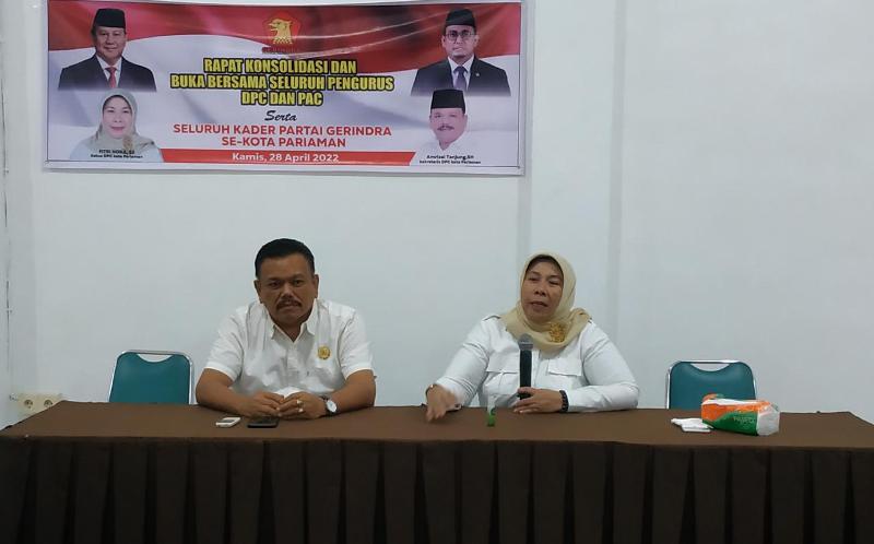 “Untuk Tahun 2024 target kita Gerindra menang, Prabowo Presiden dan Andre Rosiade sebagai Gubernur Sumbar,” kata Ketua DPC Gerindra Kota Pariaman, Fitri Nora di Pariaman, Minggu (1/5/2022).