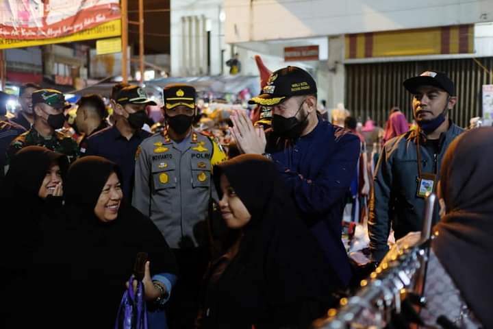 Saat mengunjungi pos pelayanan dan pengamanan Idulfitri, Wali Kota, H. Fadly Amran, BBA Datuak Paduko Malano bersama Wakil Wali Kota, Drs. Asrul dan Forkopimda menyempatkan berkunjung langsung ke pasar untuk menyapa para pedagang dan masyarakat beserta perantau yang berkunjung ke pasar.