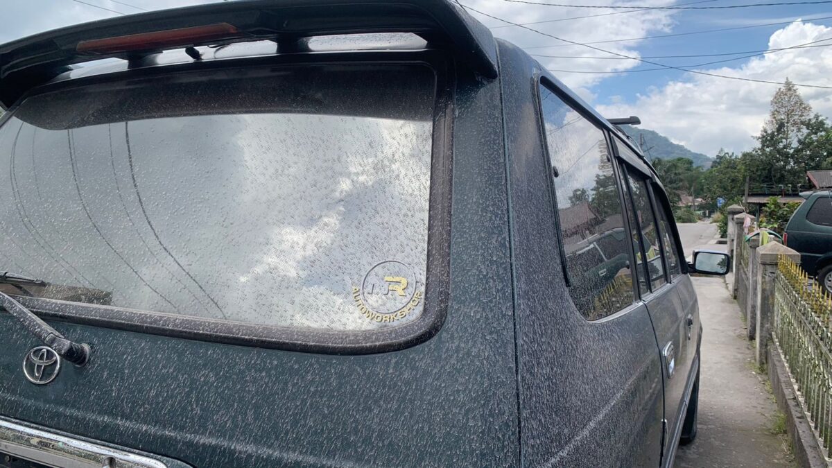 Pantauan Haluan di lapangan, kendaraan masyarakat di Kota Padang Panjang tampak kotor akibat abu vulkanik yang turun sejak pagi hingga menjelang siang ini.