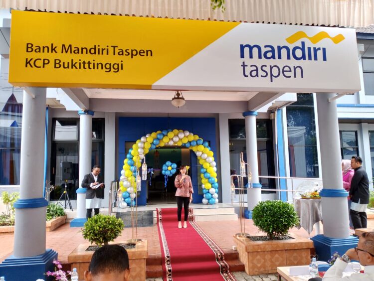 BUKITTINGGI, HARIANHALUAN,ID – Bank Mandiri Taspen Kantor Cabang Pembantu (KCP) Bukittinggi pindah alamat dari Jalan Pemuda Aur Tajungkang Tengah Sawah (ATTS) ke Kantor PT Taspen (Persero) Cabang Bukittinggi, Jalan Mohammad Syafei, Tarok Dipo.
