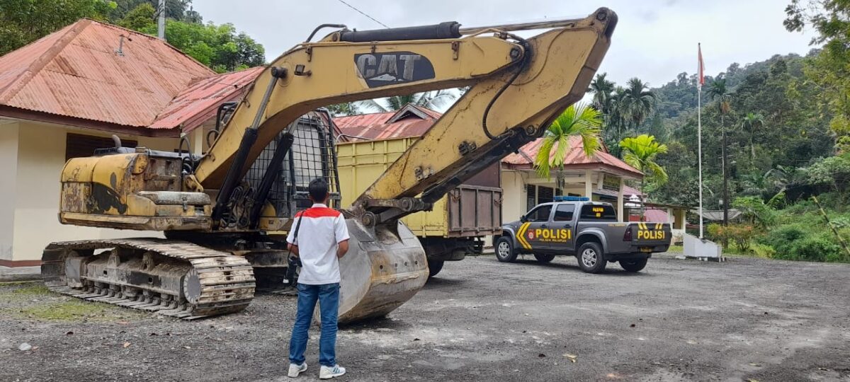 DIAMANKAN – Satu unit ekscavator diamankan Ditreskrimsus Polda Sumbar di Polsek Palupuh, Senin (16/1). YURSIL