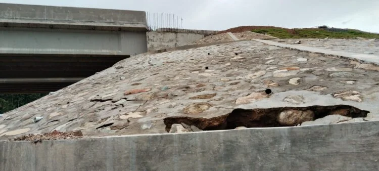 “Ada juga pemasangan beton cetak yang dicetak di dekat rest area, belum cukup waktunya untuk dipasang, yakni 21 hari setelah dicetak, dipasangkan juga oleh pekerja yang mengakibatkan ada retak-retak kecil, yang kemudian ditempel dengan semen cair,” kata salah seorang Pekerja Jalan Tol, Al yang ditemui pada Kamis (18/1/2024).