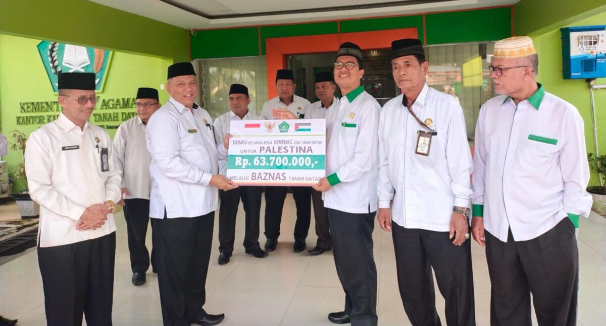 TANAH DATAR, HARIANHALUAN.ID- Memasuki Tahun 2024, Kepala Kantor Kementerian Agama Tanah Datar H. Amril menyerahkan Rp 163.500.000 batuan peduli Palestina.