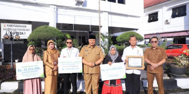 Mewujudkan itu, dalam apel pagi bersama lingkup Pemerintah Kota Solok, Wali Kota Solok Zul Elfian Umar serahkan secara simbolis santunan dari BPJS Ketenagakerjaan saat menjadi pembina apel kepada dua ahli waris penerima manfaat, Senin (22/1/2024).