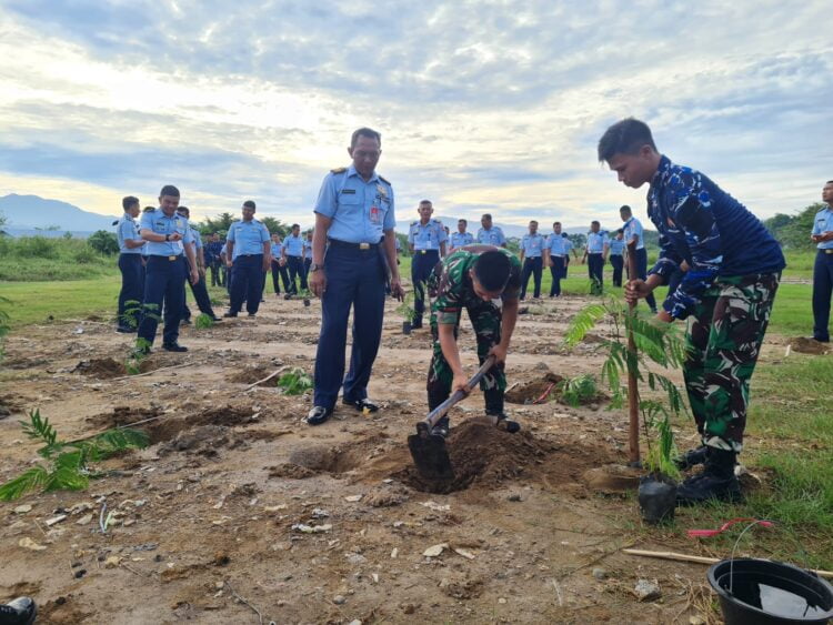 PADANG, HARIANHALUAN.ID – Mengembangkan energi biomassa, Komandan Lanud SUT, Kolonel Nav Saeful Rakhmat didampingi para jadis beserta personel Lanud SUT menanam Kaliandra di Lahan Lanud Sutan Sjahrir, Padang, Rabu (24/1/2024).