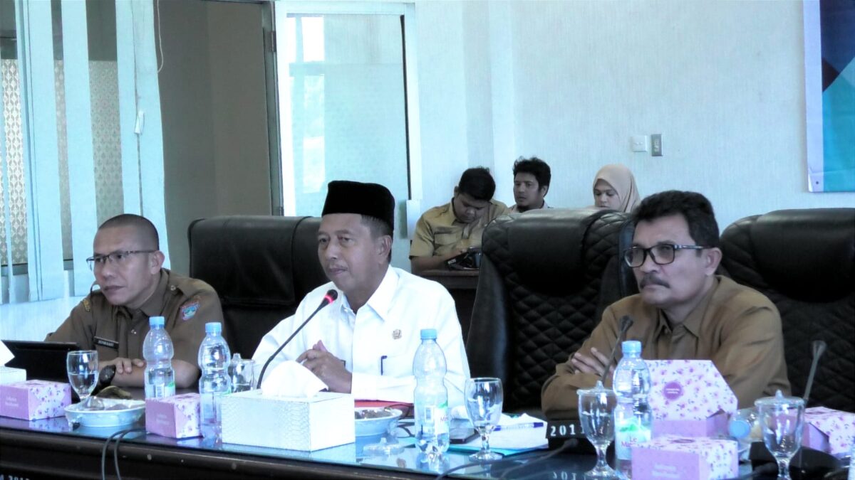 Ketua TKPKD Pasbar, Risnawanto membuka rakor koordinasi terkait penanganan kemiskinan ekstrem di Auditorium Kantor Bupati Pasbar, Selasa (30/1). Osniwati