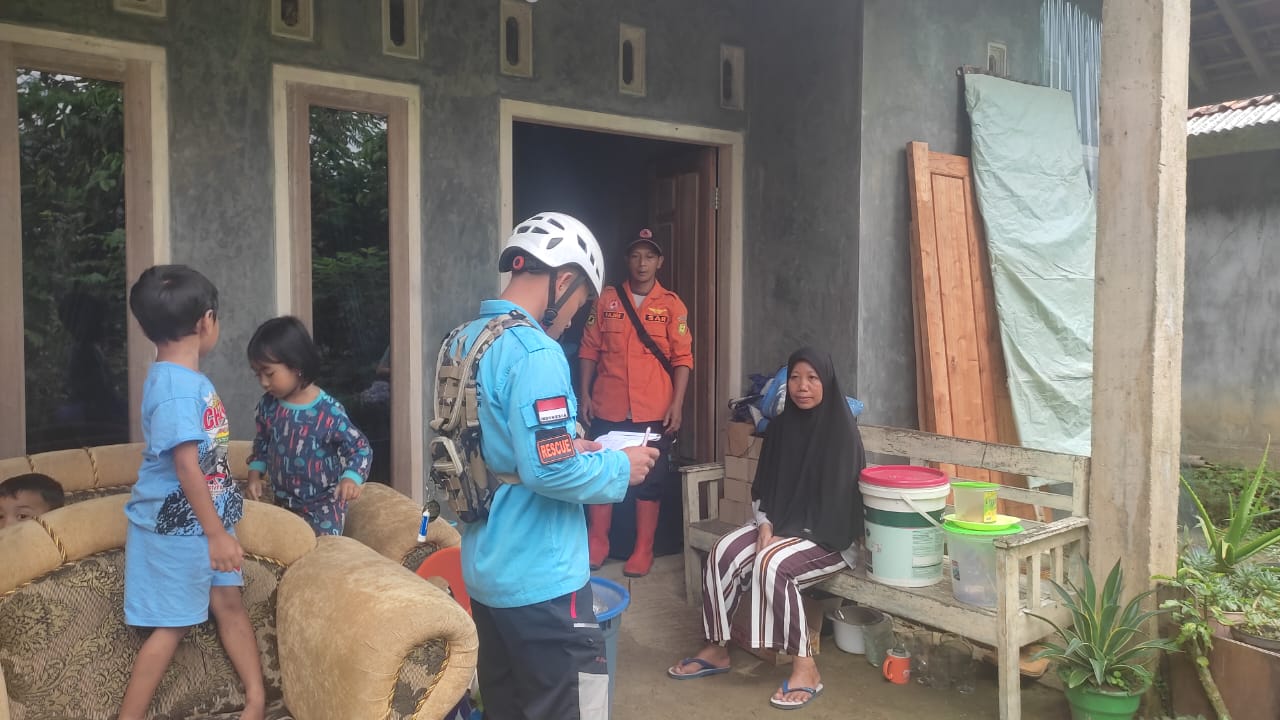 Teks foto: Tim gabungan memberikan pertolongan korban tanah longsor (6/2). sumber foto: BPBD Kab Banjarnegara