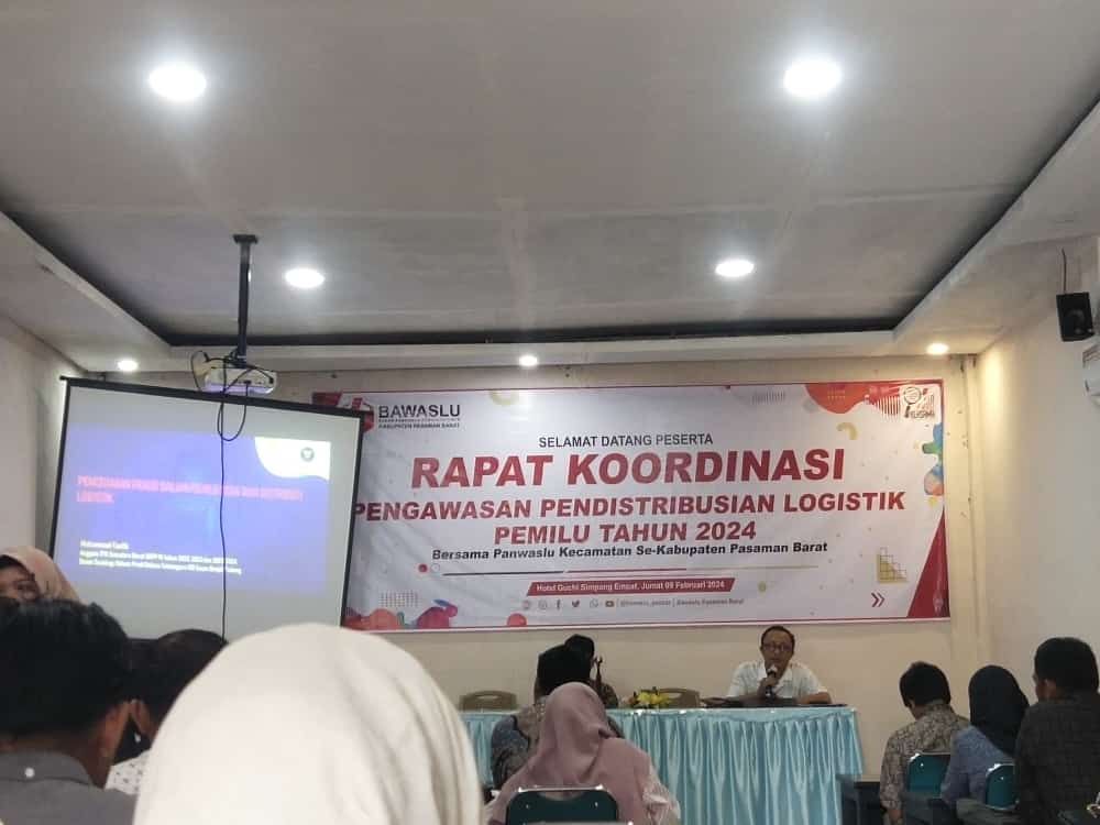 PASBAR, HARIANHALUAN ID– Badan Pengawas Pemilu (Bawaslu) Kabupaten Pasaman Barat menggelar Rapat Koordinasi dengan instansi terkait, Jumat (9/2). Pengawasan logistik Pemilu terdistribusi sesuai jadwal, sangat penting dan vital.
