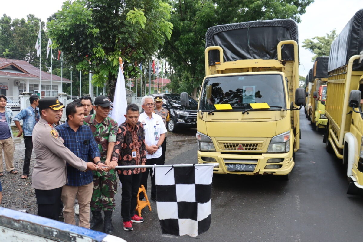PASAMAN BARAT, HARIANHALUAN ID-Pelepasan dan pendistribusian logistik Pemilu tahun 2024 dari KPU Kabupaten Pasaman Barat ke tingkat PPK kecamatan di mulai, Sabtu (10/2/2024) kemaren.