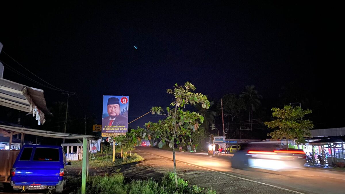 Teks Foto: Salah satu baliho besar yang masih terpajang di pinggir jalan lintas Sumatera Dharmasraya.maryadi
