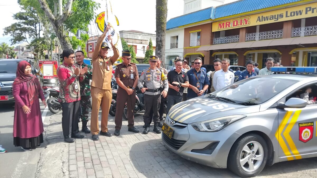 Prosesi pelepasan logistik Pemilu 2024 oleh Pj Wali Kota Pariaman Roberia. MITHA