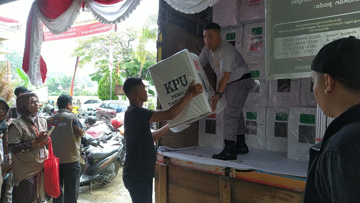 KOTA SOLOK, HARIANHALUAN.ID –Sehari jelang pemilihan umum, KPU Kota Solok distribusikan logistik pemilu 2024, Selasa (13/2). Pengiriman logistik memanfaatkan 2 unit truk. Dari kantor KPU, logistik akan dibawa ke kantor kecamatan kemudian kantor lurah. Kemudian didistribusikan ke masing-masing TPS.