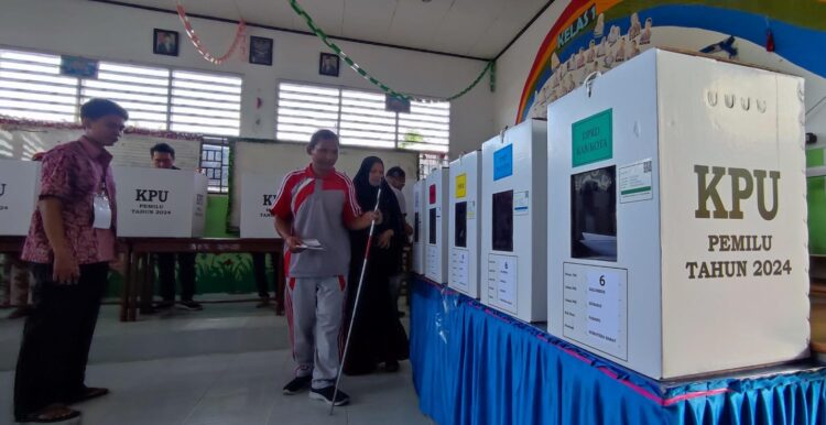 Seblumnya sudah ada sosialisasi sebelum hari ini (hari pencoblosan) bagaimana tata cara memilih bagi penyandang disabilitas.