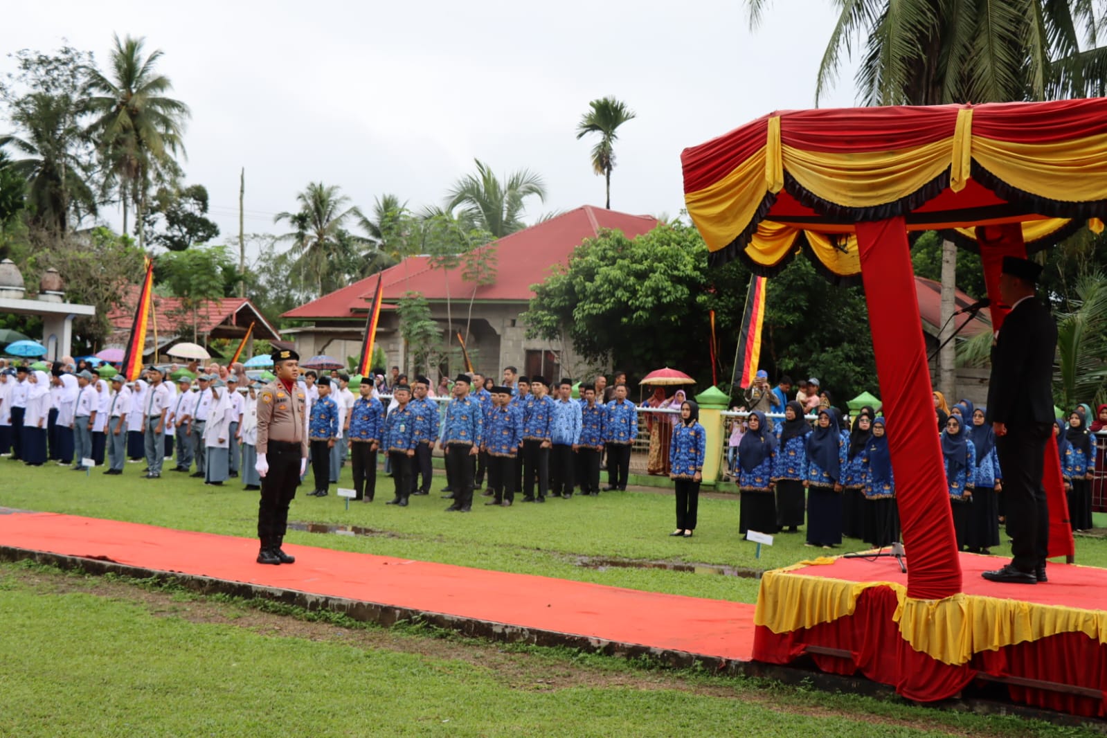 Meskipun dilaksanakan di tengah cuaca mendung dan gerimis, upacara yang dipimpin Bupati Benny Dwifa Yuswir tetap berlangsung khidmat.