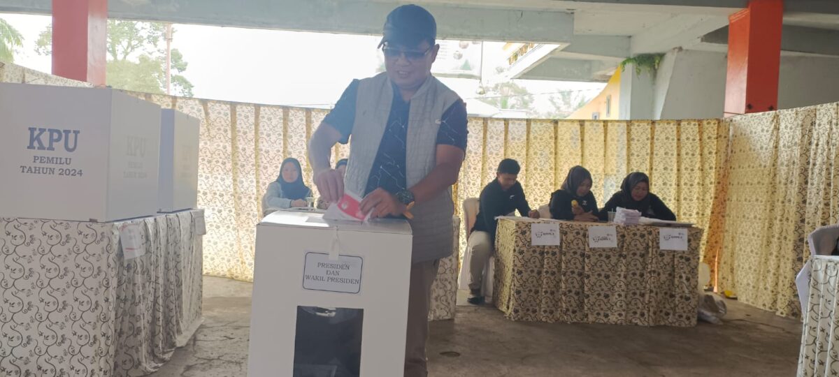 TANAH DATAR, HARIANHALUAN.ID – Anton Yondra Ketua DPD Partai Golkar sekaligus Wakil Ketua DPRD Tanah Datar mengikuti pencoblosan ulang saat digelarnya PSU di TPS 12 Nagari Tanjung Alam Kecamatan Tanjung Baru Kabupaten Tanah Datar, Sabtu (24/2).