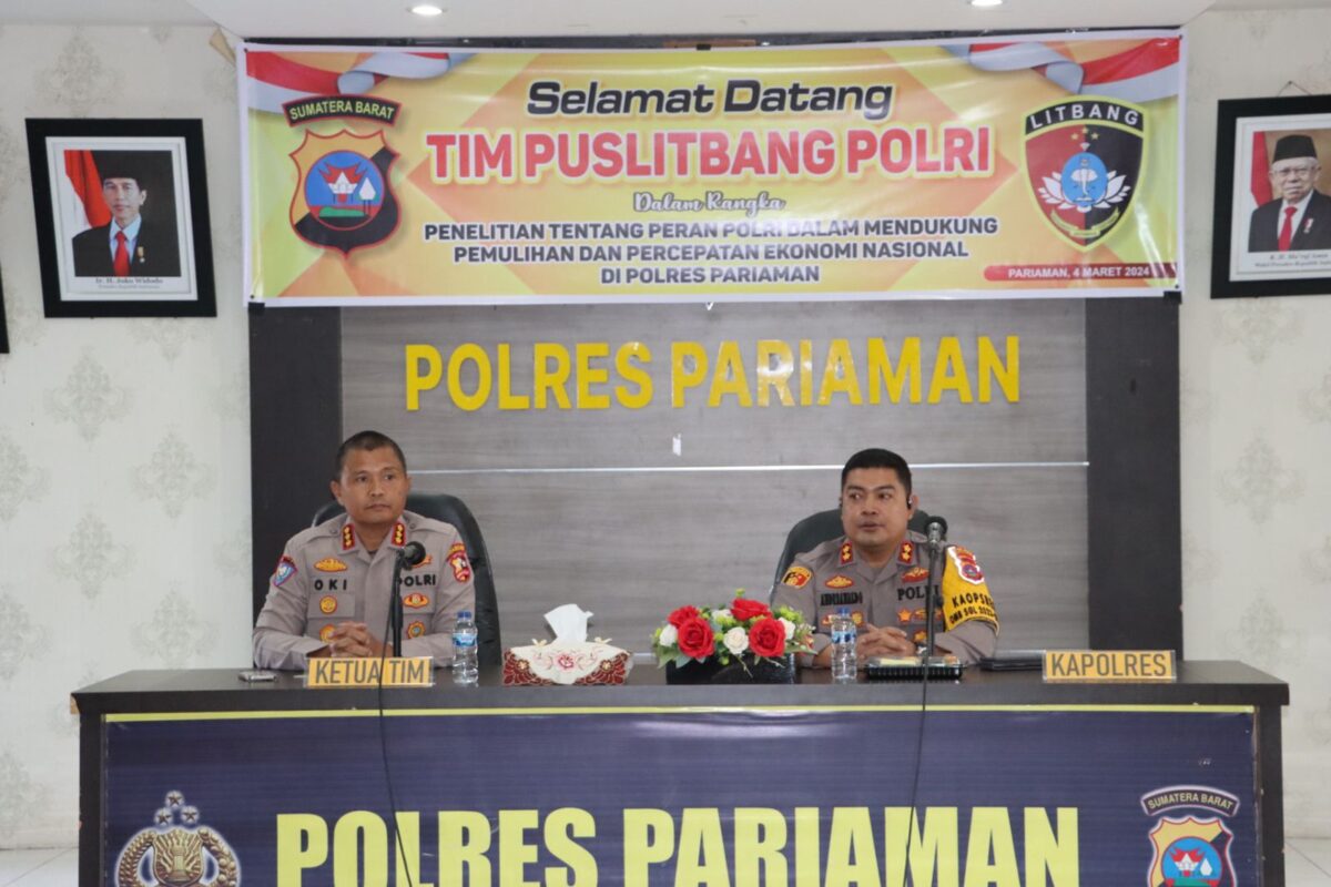 Kegiatan tersebut dipimpin oleh Ketua Tim Peneliti Puslitbang Polri Kombes Pol Oki Waskito didampingi Kapolres Pariaman AKBP Andreanaldo Ademi dan diikuti Wakapolres Pariaman Kompol Jon Hendri.