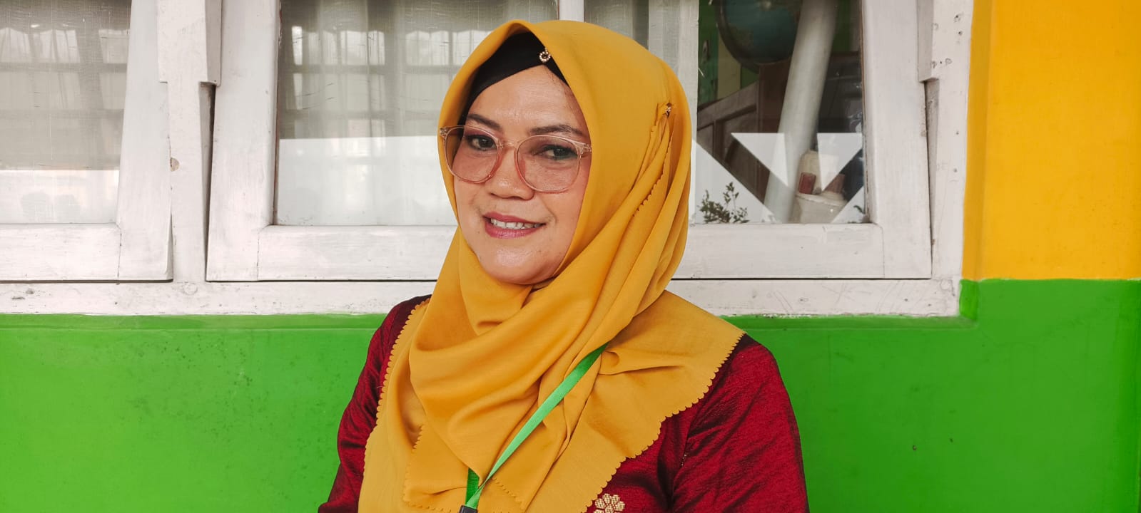 “Saya mengajar di sini semenjak tahun 2006 sebagai guru honorer hingga hari ini, namun saya tetap semangat memberikan materi dengan baik kepada para murid,” katanya.