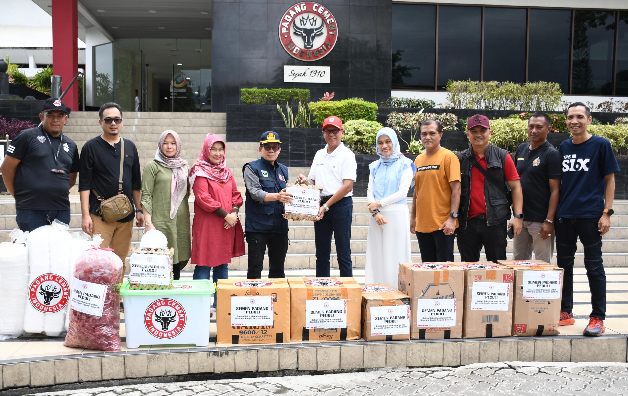 Bantuan bahan makanan yang terdiri dari beras, ayam, telur, bawang, cabai, bumbu masak, minyak goreng, kentang, tomat, tempe dan lain sebagainya itu, diserahkan oleh Dirut PT Semen Padang, Indrieffouny Indra kepada Kepala Dinas Sosial Sumbar, Syaifullah di Plaza di Kantor Pusat, Minggu (9/3).