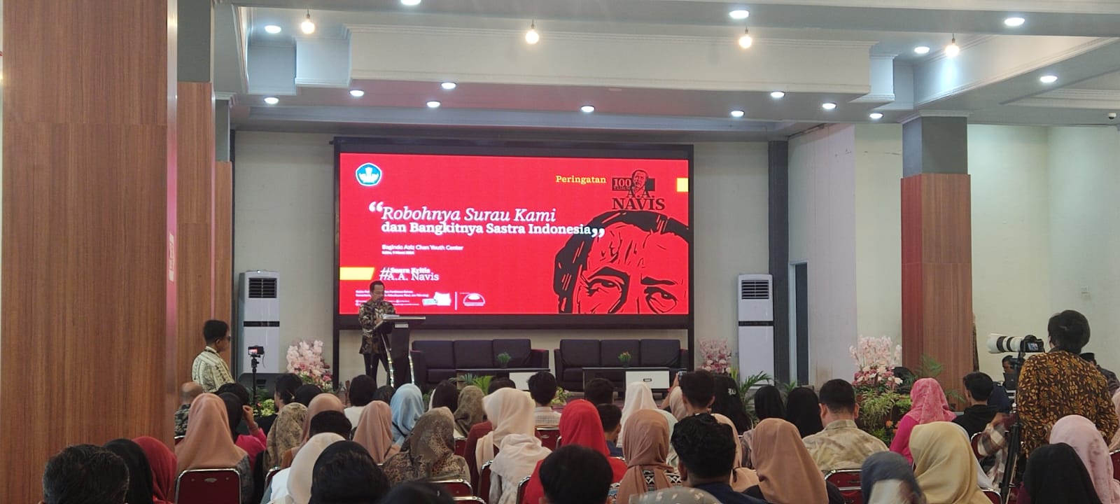 PADANG, HARIANHALUAN.ID–Badan Pengembangan dan Pembinaan Bahasa Kemendikbudristek menggelar peluncuran peringatan 100 tahun budayawan sekaligus sastrawan terkemuka di Indonesia asal Sumatera Barat (Sumbar) A.A Navis Youth Center, Bagindo Aziz Chan, Padang (9/3/2024). Peringatan ini ditandai sebagai perayaan internasional oleh UNESCO.