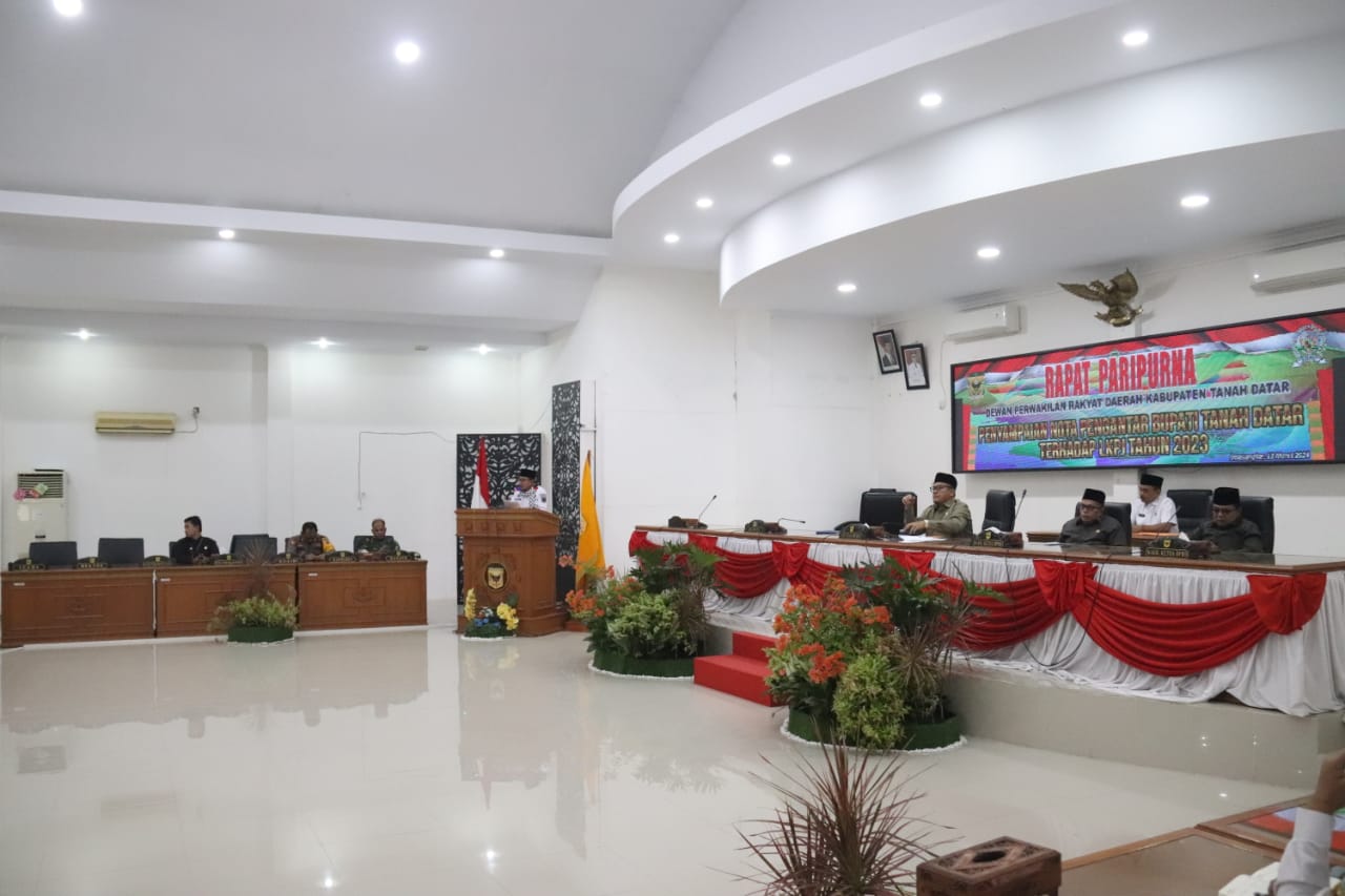 Rapat paripurna dipimpin langsung Ketua DPRD Tanah Datar, Rony Mulyadi Dt. Bungsu didampingi Wakil Ketua DPRD Saidani dan Anton Yondra, serta 21 orang anggota DPRD dan dihadiri Bupati Tanah Datar, Eka Putra, Forkopimda, sekretaris dewan, kepala OPD, para kabag, camat dan wali nagari, serta undangan lainnya.