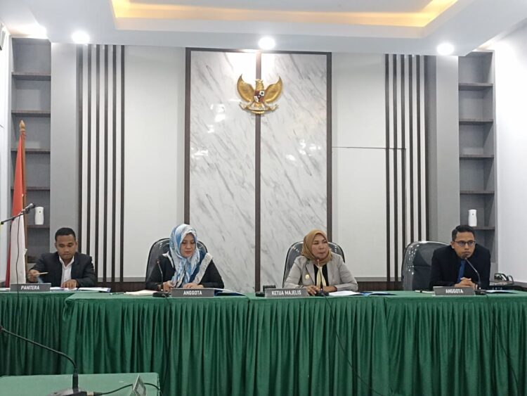 Sidang perdana perkara Nomor 41/X/KISB-PS/2023 ini dipimpin Ketua Majelis KI Sumbar, Mona Sisca beserta Anggota Majelis Tanti Endang Lestari dan Fadhil di Ruang Sidang KI Sumbar, Jumat (15/3/2024).