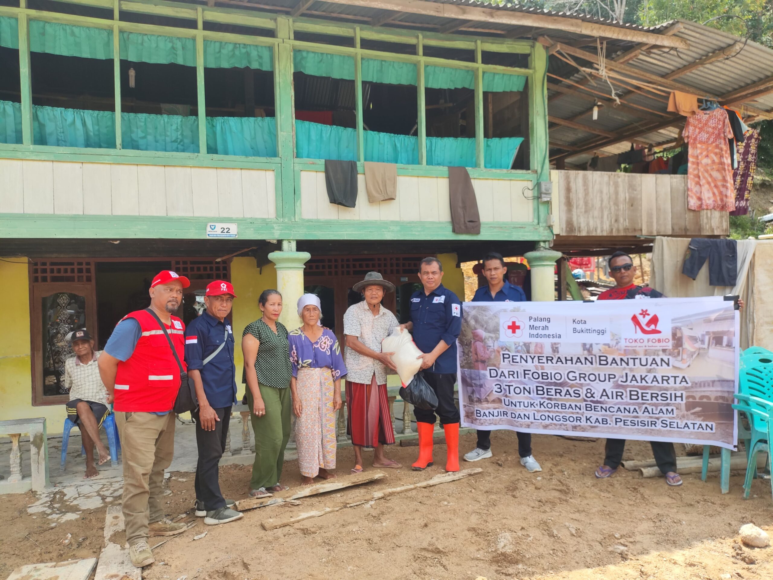 Bantuan berupa 300 karung beras isi 10 kg dari Fobio Group dan 250 paket sembako dari Komunitas Tageh Bajalan Bukittinggi, masing-masing diberikan kepada 59 KK yang terdampak di Kampung Rumah Bendi, Lubuk Ganggo dan Kampung Melayu, Kenagarian Duku Utara, Kecamatan Koto XI Utara.
