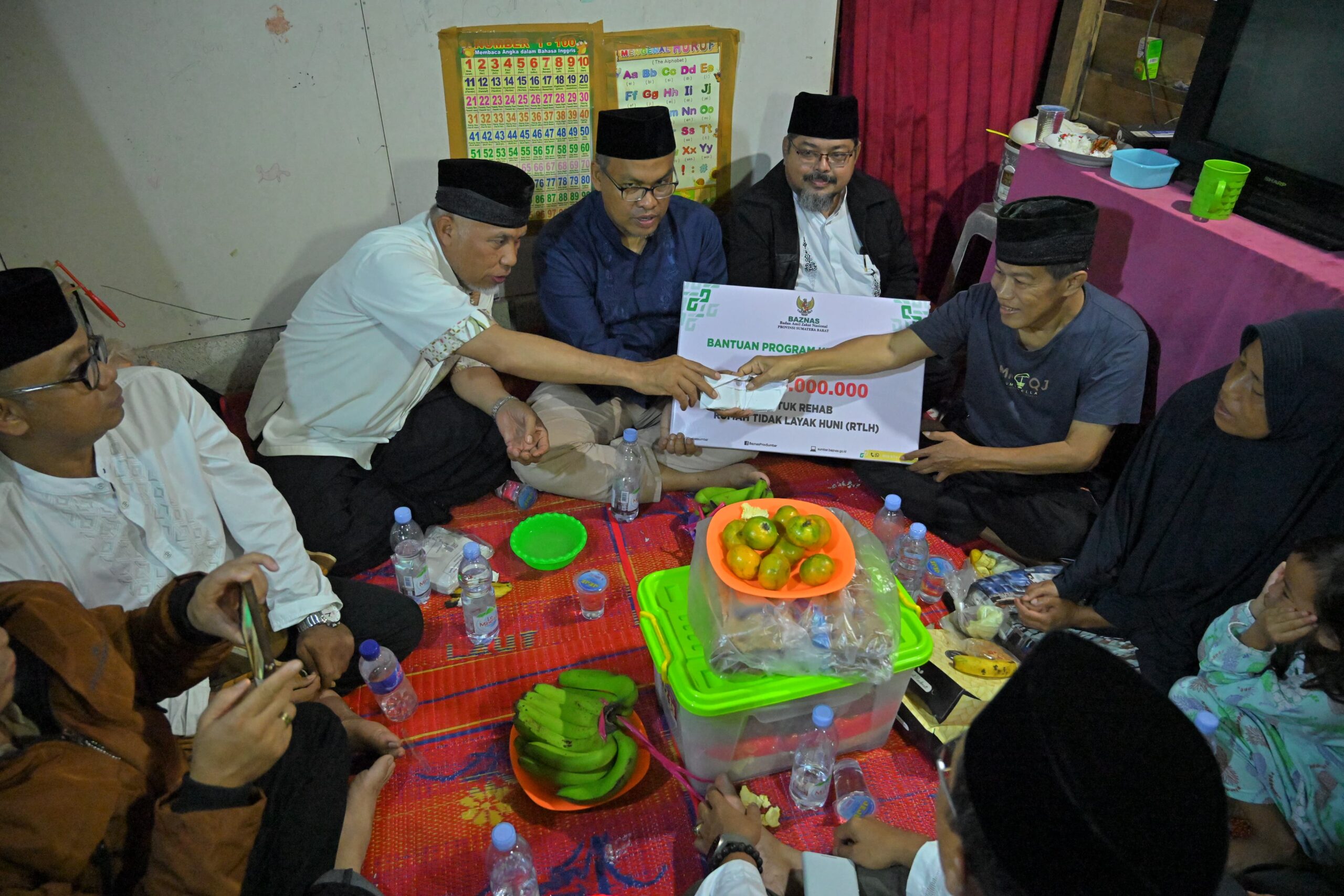 “Dalam program rutin yang didanai dari Badan Amil Zakat Nasional (Baznas) Sumbar ini, kita serahkan bantuan senilai Rp25 juta, lalu juga ada tambahan bantuan dari Bank Nagari senilai Rp2,5 juta dan dari Bapenda Sumbar senilai Rp5 juta. Pak Iyan mengaku akan digunakan untuk membangun rumah di atas tanah sendiri,” ucap Gubernur Mahyeldi,