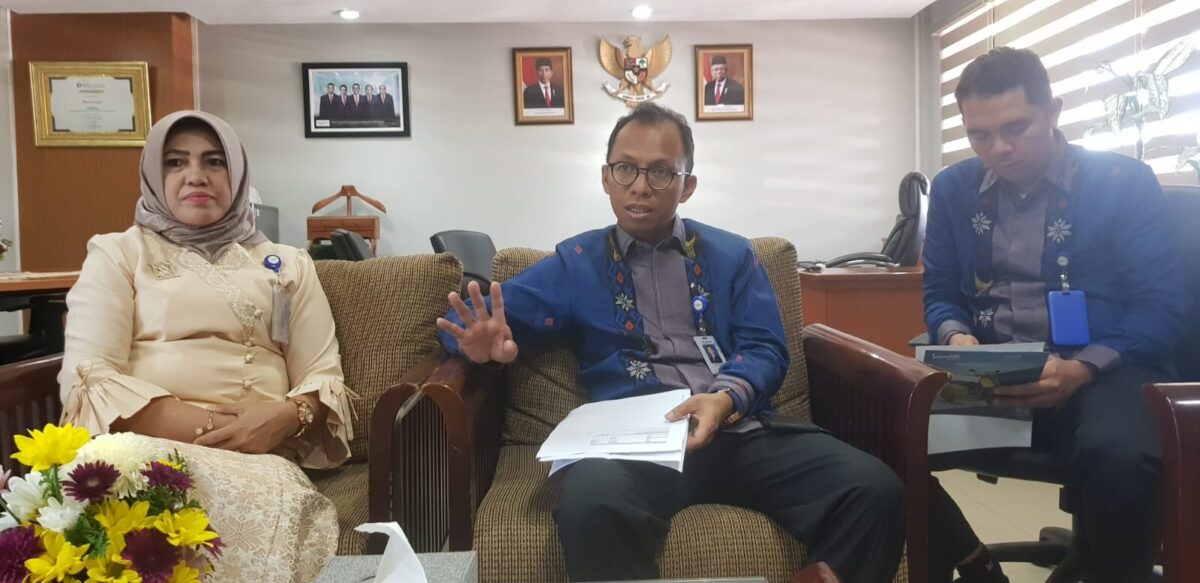 Pemimpin Bank Nagari Cabang Utama Padang Roni Edrian didampingi Yudi Silvestra Pemimpin Grup Pemasaran dan Desi Yufialita Pemimpin Bagian Kas. IST