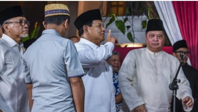 Selanjutnya, Prabowo pun satu per satu menyapa hadirin yang ada di lokasi, mulai dari elite Golkar, Gerindra, hingga PBB.