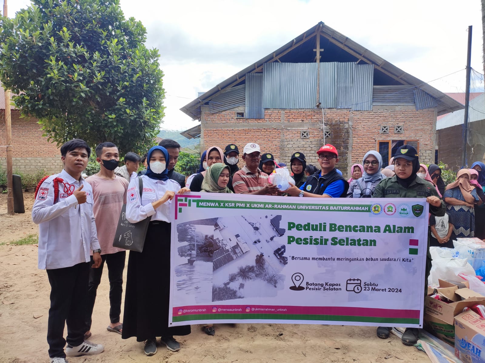 Civitas akademika Unbrah tersebut terdiri dari mahasiswa, dosen dan tenaga kependidikan. Rombongan yang dipimpin oleh Kepala UPT KKN-USR Unbrah Dr. Edi Suandi, MM tersebut menyerahkan bantuan berupa sembako, pakaian, hingga mukena kepada warga di Gang Sawah Nagari Sungai Nyalo, Kecamatan Batang Kapas, Pesisir Selatan.