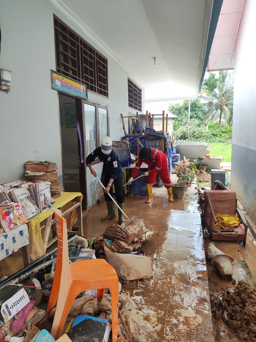 Tim Tanggap Darurat Bencana PMI Provinsi Sumatera Barat, guru dan masyarakat sekitar sekolah bersama-sama membersihkan setiap ruangan pada bangunan sekolah tersebut. Diketahui semenjak banjir dan longsor menimpa daerah tersebut, masyarakat belum sempat membersihkan sekolah ataupun fasilitas umum lainnya.