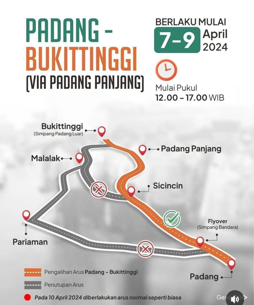 Berikut jadwal dan peta jalan untuk pedoman mudik Lebaran dari dan ke Bukittinggi