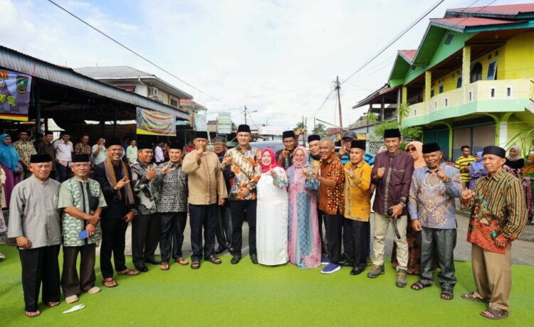 Keterangan Foto: Bupati Sijunjung Benny Dwifa Yuswir SSTP,M.Si bersama ketua TP PKK berfoto bersama dengan tokoh perantau serta tokoh masyarakat Nagari Padang Sibusuk usai melaksanakan Makan Bajamba bersama warga dan perantau, Kamis (11/4) di Los Pasar Nagari Padang Sibusuk kecamatan Kupitan.