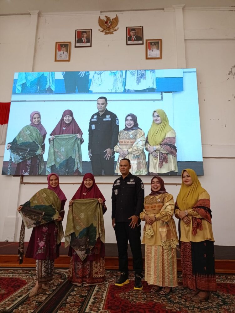 Keterangan Foto: Bupati Sijunjung Benny Dwifa Yuswir SSTP,M.SI didampingi Ketua TP PKK Riry Benny Dwifa dan Ketua GOW Dona Iraddatillah saat membuka acara pertemuan bulanan ISKADA se Sumatera Barat dan menyerahkan kain songket Ungga. Dan ceta bacorak kepada istri Gubernur Sumbar Hatbelli Mahyeldi, Kamis (18/4) di Balairung Lansek Manih Kantor Bupati Sijunjung.