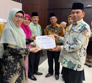 Penghargaan tersebut diserahkan Kepala Kantor Kementerian Agama (Kakankemenag) Padang Edy Oktafiandi kepada Kepala MIN 4 Padang Desniwati pada acara penutupan pelatihan tersebut di Asrama Haji Tabing Padang, Kamis (25/4/24).