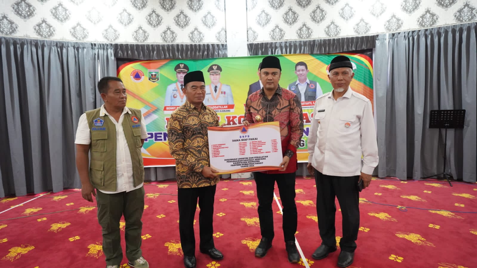 Bantuan tersebut berupa bantuan logistik dan peralatan untuk siaga darurat dalam penanggulangan bencana hidrometrologi dari Badan Nasional Penanggulangan Bencana (BNPB). Kunjungan itu juga bertepatan dengan Hari Kesiapsiagaan Bencana serentak secara Nasional dan untuk tahun 2024 dipusatkan di Provinsi Sumatera Barat.