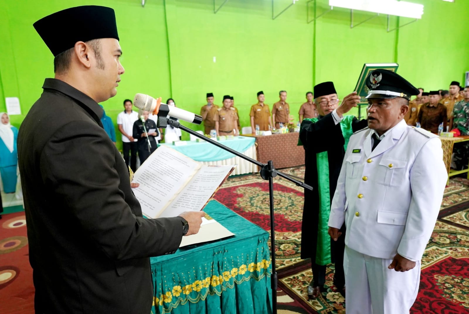 SIJUNJUNG, HARIANHALUAN.ID – Bupati Sijunjung Benny Dwifa Yuswir, S.STP, M.Si bersama Ketua TP PKK Nedia Fitri Benny Dwifa melantik Mulyadi dan Rosmirita Mulyadi menjadi Wali Nagari serta Ketua TP PKK Nagari Pematang Panjang, Kecamatan Sijunjung, Selasa (30/4/2024) di Hall Bukit Cati Nagari Pematang Panjang.