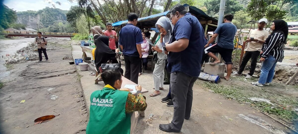 Teks Foto – Baznas Kota Bukittinggi menyerahkan bantuan tahap kedua kepada korban banjir di Ngarai Sianok, Kamis (2/5). YURSIL.